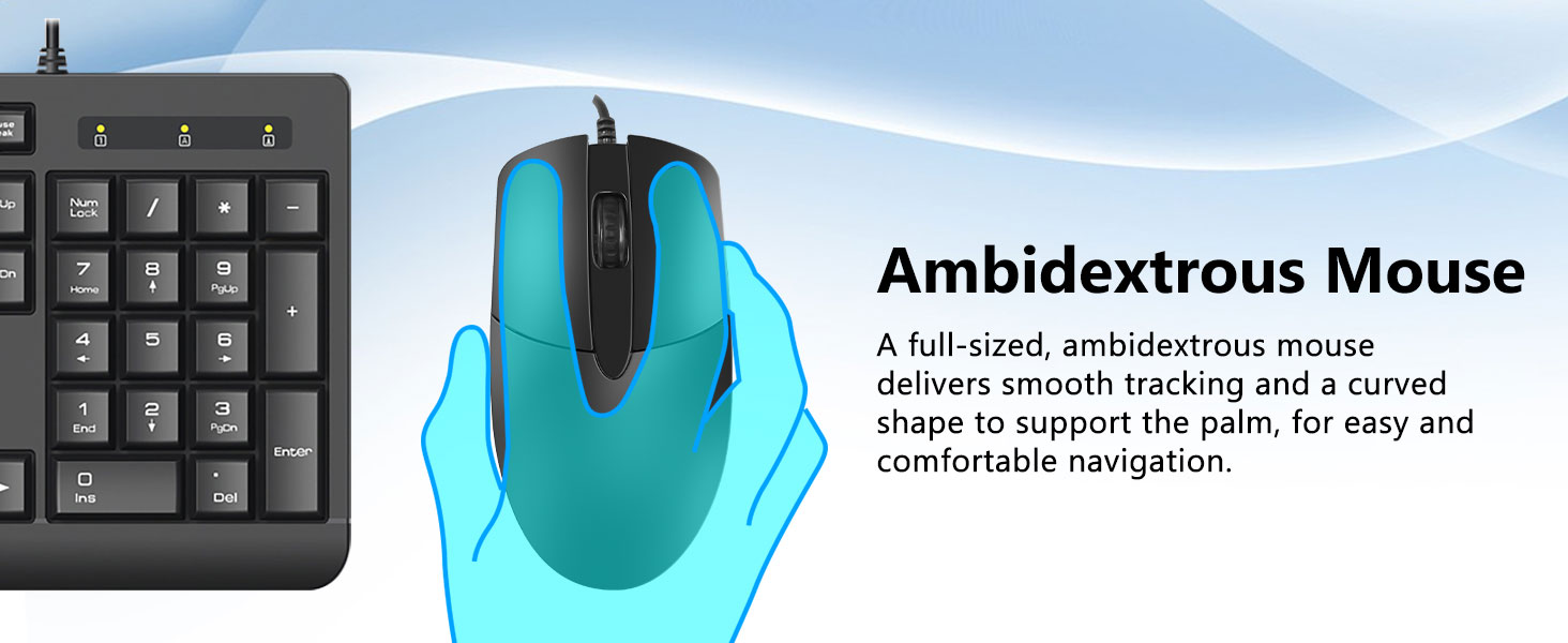 Die ingeslote muis beskik oor 'n betroubare optiese sensor wat presiese wyseropsporing verskaf. Dit laat gebruikers toe om dokumente, webwerwe en toepassings glad te navigeer.