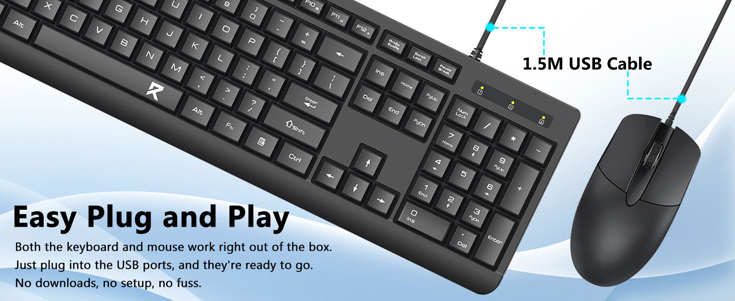 Die gebruik van die Black BC7543 Wired Keyboard and Mouse Combo is eenvoudig.