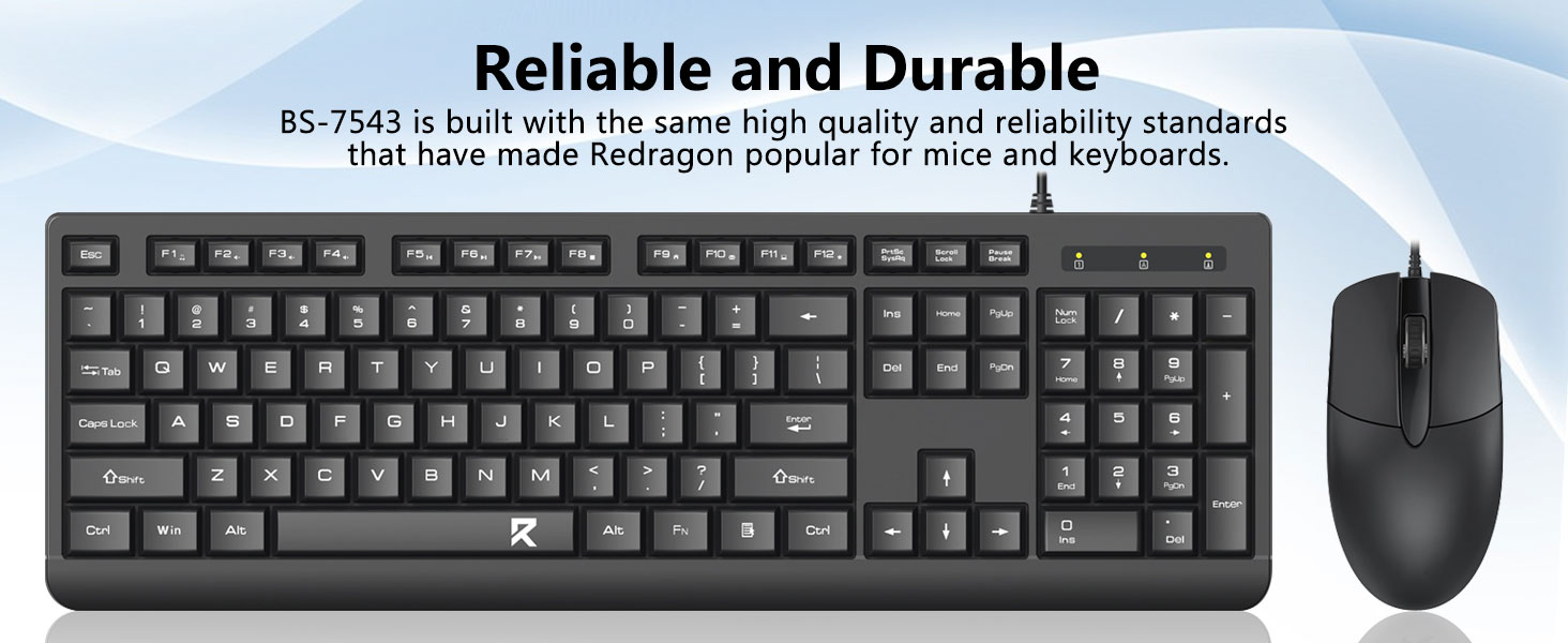 Die bedrade USB-verbinding verseker stabiele werkverrigting sonder onderbrekings, wat die Black BC7543 Wired Keyboard and Mouse Combo geskik maak vir professionele omgewings.