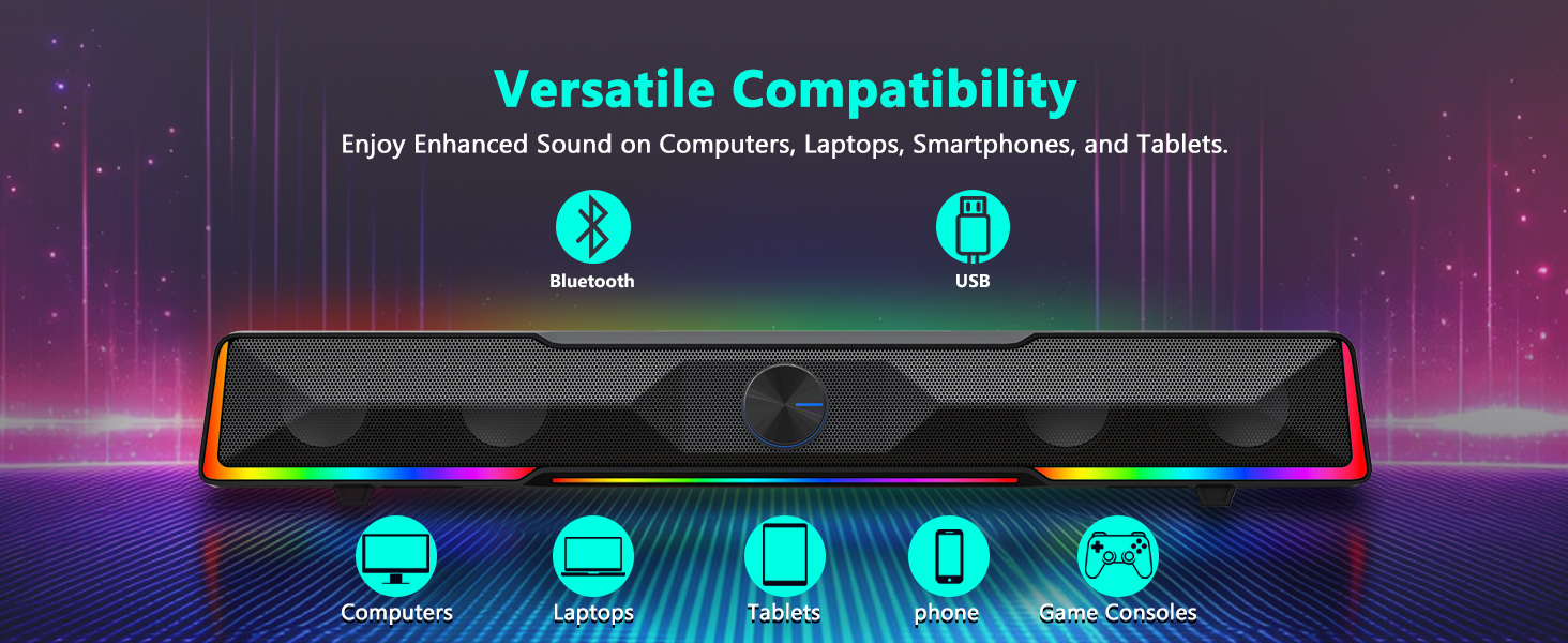 Die Black GS516 Bluetooth/USB bedrade verbinding Soundbar Volume Knop Rekenaarluidspreker ondersteun baie moderne toestelle, wat dit 'n veelsydige rekenaarklankoplossing maak.