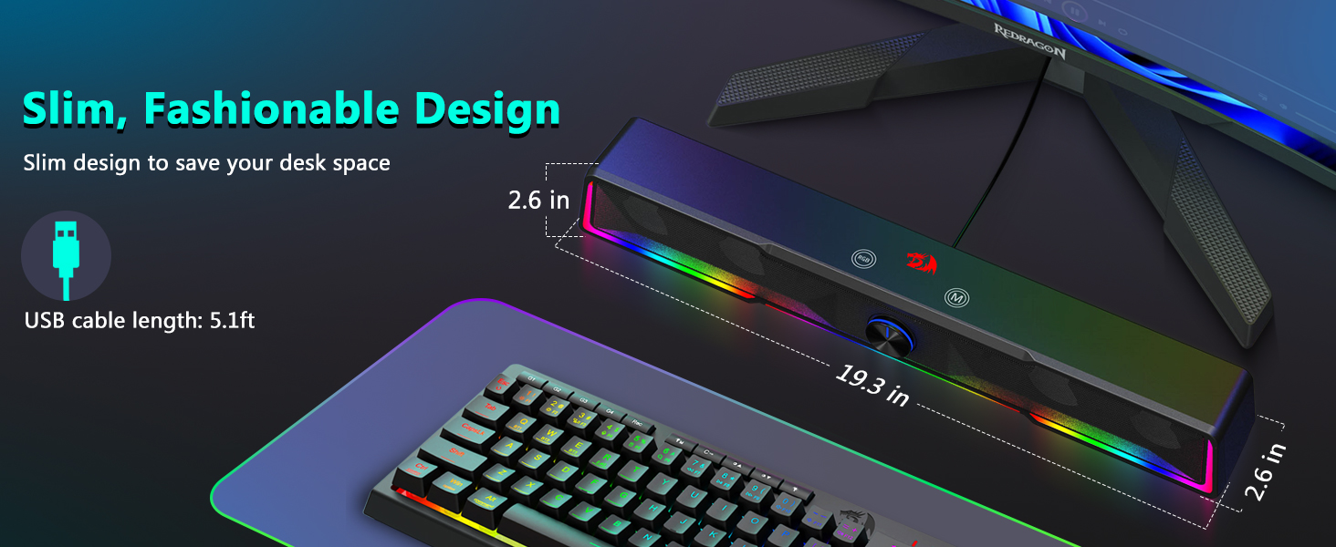 Anders as tradisionele luidsprekers wat groot areas aan beide kante van 'n monitor beslaan, beskik die Black GS516 Bluetooth/USB Wired Connection Soundbar Volume Knob Rekenaarluidspreker oor 'n skraal klankbalkstruktuur wat gerieflik onder die meeste rekenaarskerms pas.
