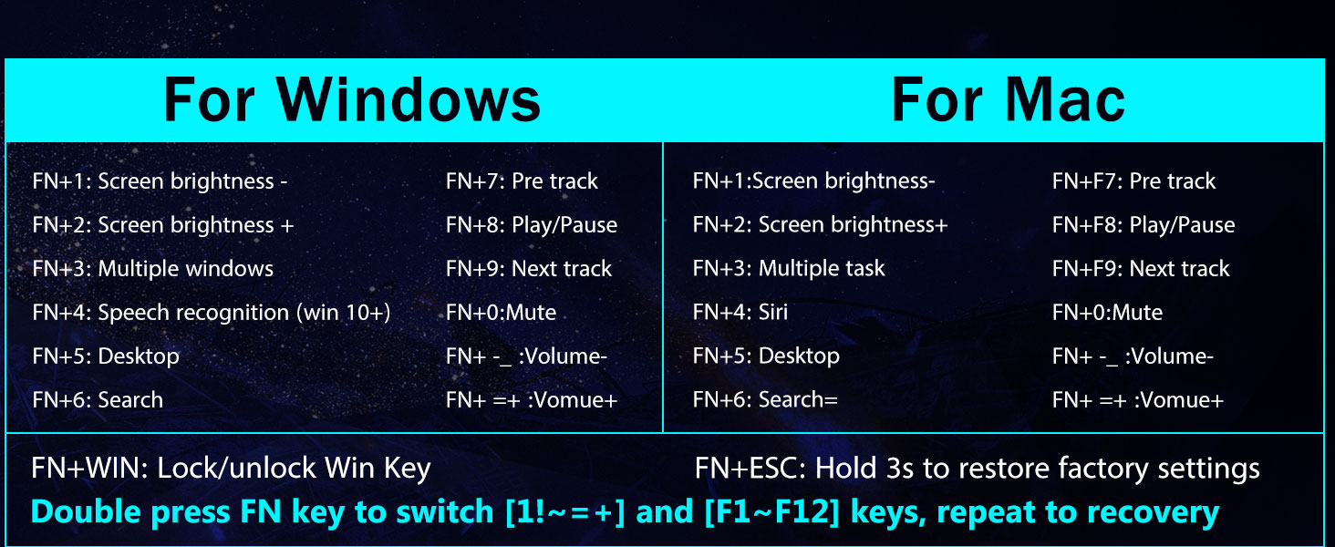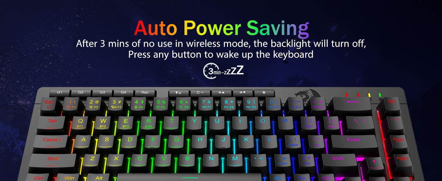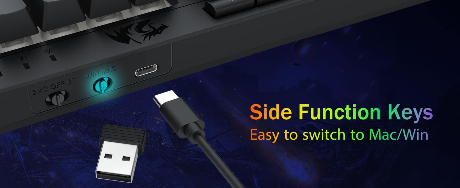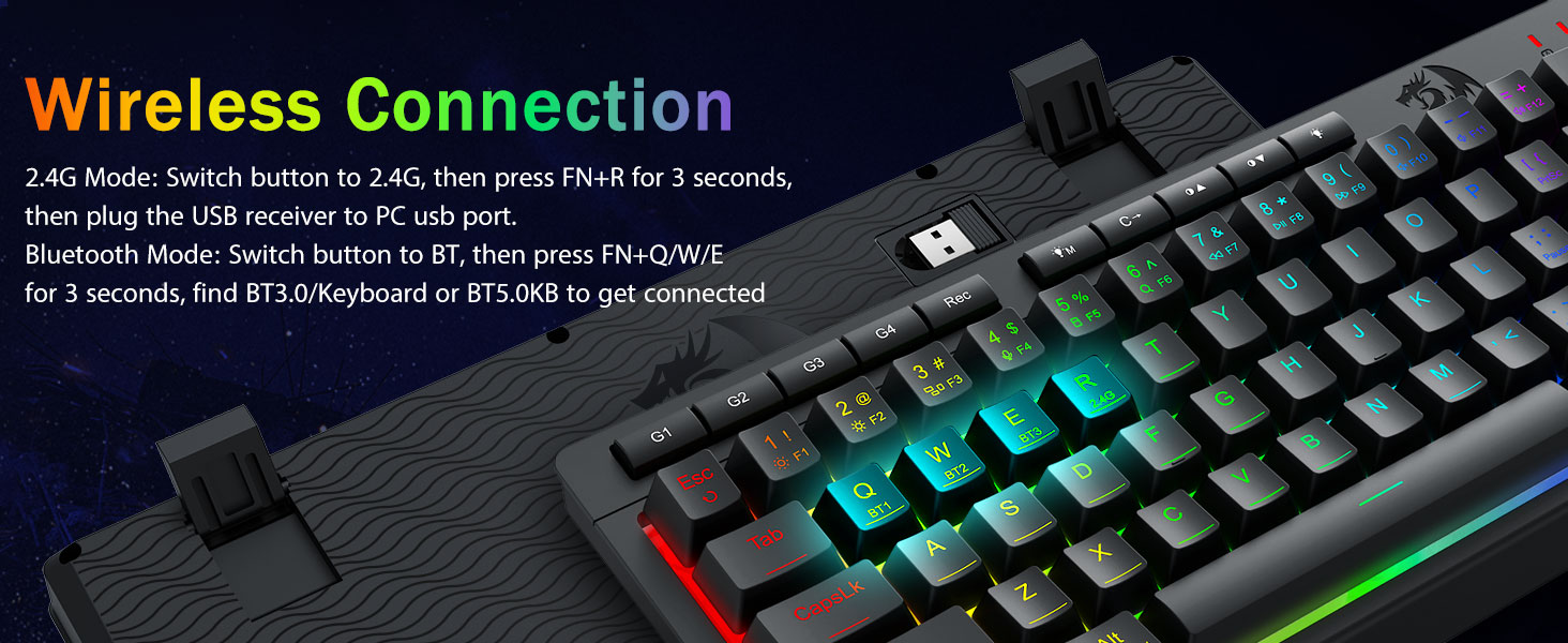 Pro-graad speletjieprestasie en toegewyde agtergrondbeligtingskontroles -Skakel naatloos tussen Bluetooth 5.0, 2.4GHz draadlose of USB-C bedrade modusse, en koppel tot 5 toestelle gelyktydig (PC, Mac, tablette, fone, PS/XBOX). Wissel toestelle moeiteloos deur middel van kortpadsleutels of syknoppie - perfek vir hibriede werk-/speletjie-opstellings. Bly vir weke aangedryf met die 4 000 mAh-battery (30+ dae bystand, 50 uur RGB-looptyd).