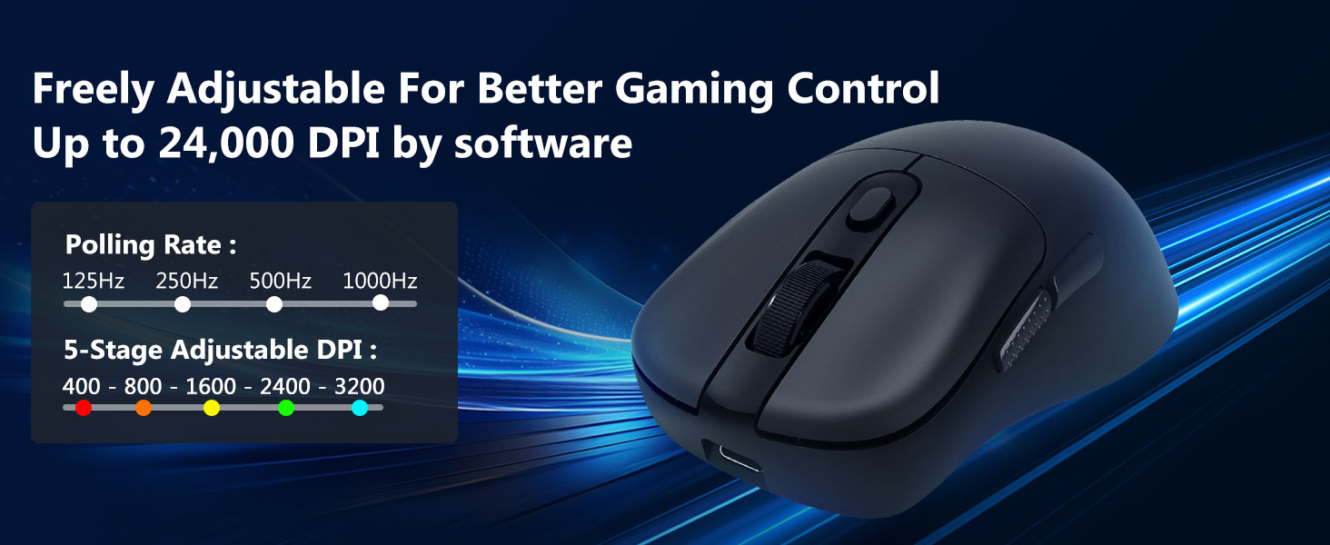 Die muis is toegerus met 'n hoëprestasie optiese sensor wat tot 24 000 DPI kan bereik. Dit stel gebruikers in staat om sensitiwiteitsvlakke vir verskillende take aan te pas, van presiese wyserbeheer tot vinnige skermnavigasie.