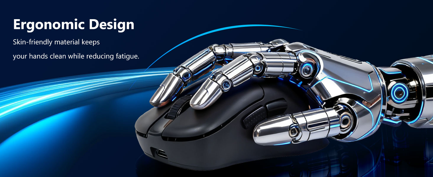 Die muis is gevorm om natuurlike handposisionering te ondersteun, wat verskillende greepstyle akkommodeer. Dit help om moegheid tydens langdurige gebruik te verminder.