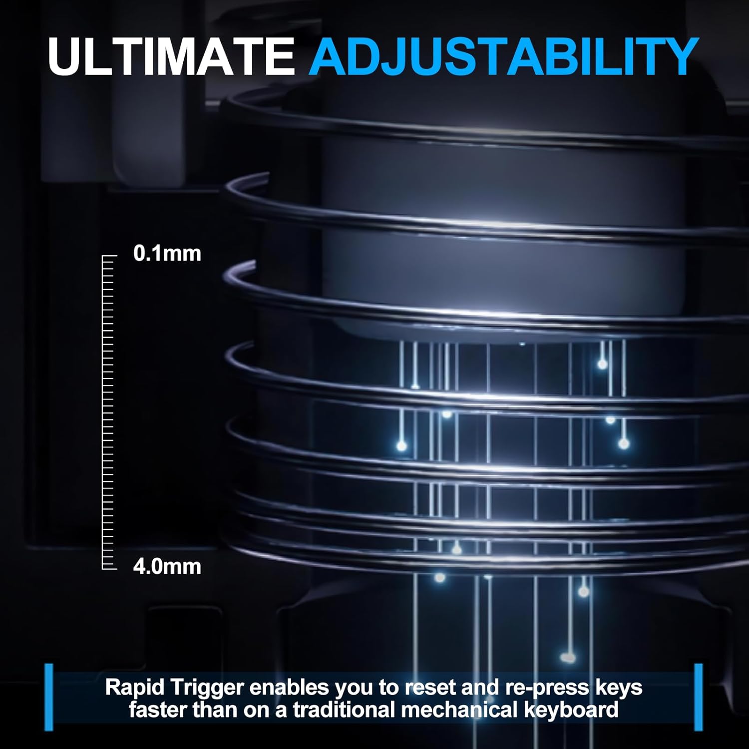 Die Wit/Blou-Swart K701 Rapid Trigger 60% Wired Magnetic Switch Mechanical Gaming Keyboard bied 'n responsiewe tikervaring wat aanpas by verskillende gebruikersvoorkeure. Verstelbare aandryfpunte stel gebruikers in staat om sensitiwiteit te verfyn op grond van hul behoeftes.