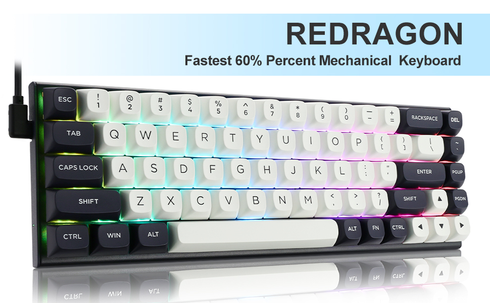 Hierdie sleutelbord fokus op die lewering van vinnige aandrywing, konsekwente toetsaanslagen en 'n skoon ontwerp wat by beide speletjies en professionele opstellings pas. Die uitleg van 60% verwyder onnodige sleutels terwyl noodsaaklike funksionaliteit behou word, wat gebruikers in staat stel om lessenaarspasie te maksimeer en doeltreffende beheer tydens spel te behou.