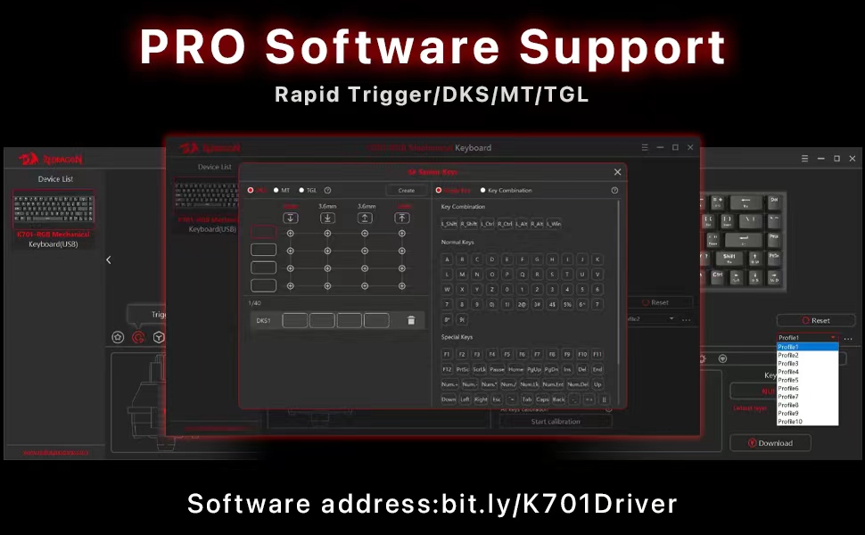Die Wit/Blou-Swart K701 Rapid Trigger 60% Wired Magnetic Switch Mechanical Gaming Keyboard is ontwerp vir gebruikers wat presisie, spoed en 'n kompakte vormfaktor prioritiseer. Die kombinasie van magnetiese skakelaar-tegnologie, vinnige sneller-funksionaliteit en duursame konstruksie maak dit 'n betroubare opsie vir beide speletjies en produktiwiteit.