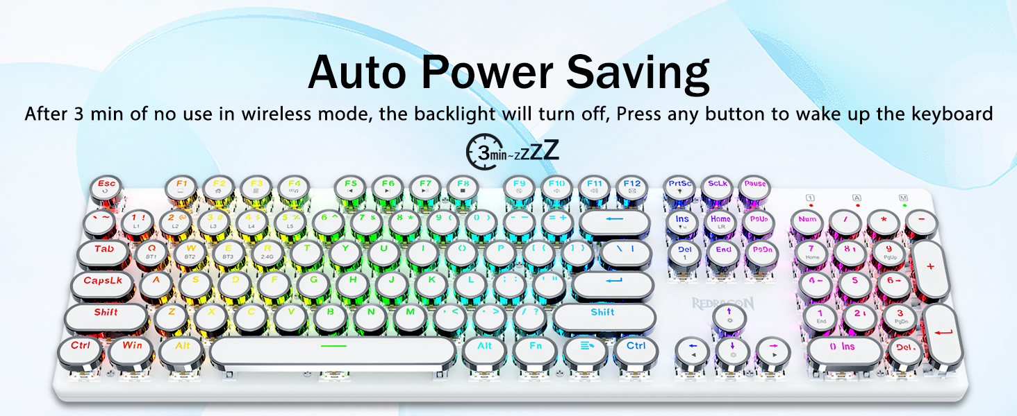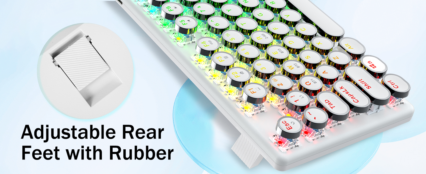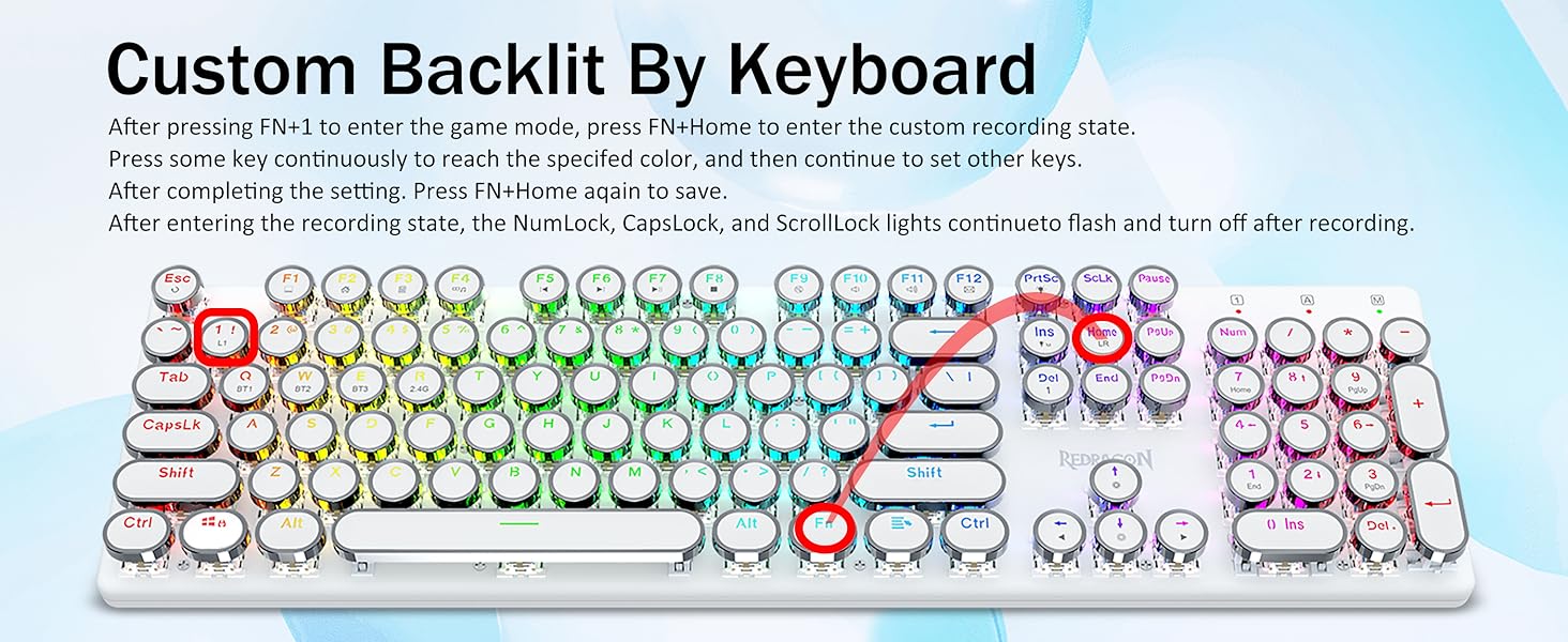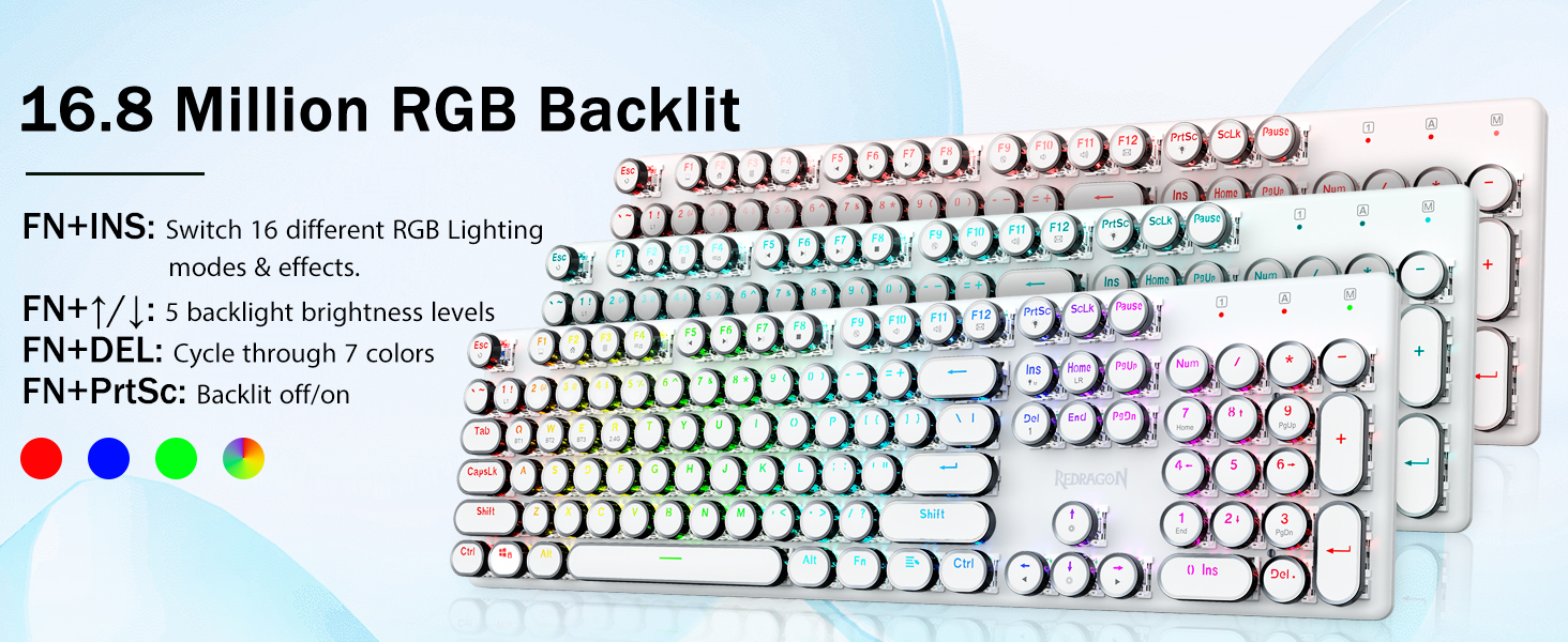 𝗥𝗲𝘁𝗿𝗼 𝗧𝘆𝗽𝗲𝘄𝗿𝗶𝘁𝗲𝗿 𝗦𝘁𝘆𝗹𝗲 𝘄𝗶𝘁 𝗠𝗲𝗰𝗵𝗮𝗻𝗶𝗰𝗮𝗹 𝗞𝗲𝘆𝘀- Redragon Meganiese blou skakelaars bied medium weerstand, hoorbare klikklank en tasbare terugvoer, bied responsiewe en presiese spelomgewing en -verrigting. Vintage steampunk-sleutelbord ronde sleutelkappe lyk soos 'n klassieke tikmasjien, gee jou gemaklike tikgevoel en stabiele klikaanraking.