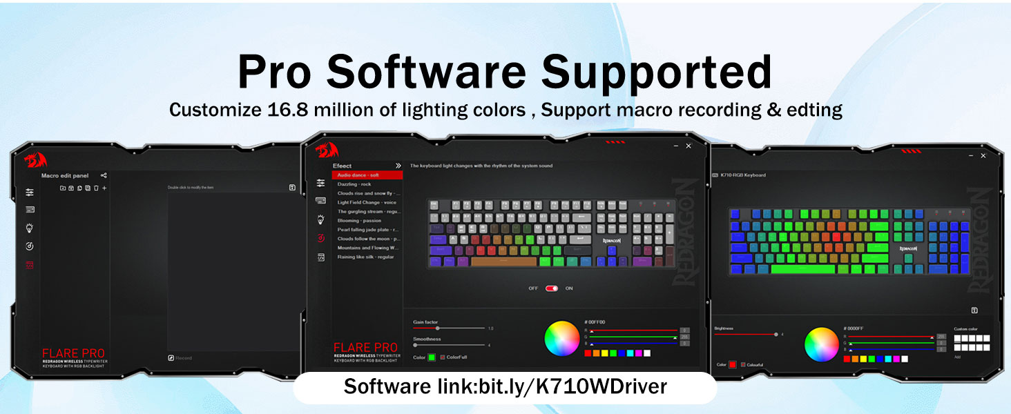 𝗣𝗿𝗼 𝗦𝗼𝗳𝘁𝘄𝗮𝗿𝗲 𝗦𝘂𝗽𝗽𝗼𝗿𝘁𝗲𝗱- Brei jou opsies uit met die beskikbare sagteware om jou eie nuwe modusse en effekte te ontwerp. Makro's met verskillende sleutelbindings of kortpaaie vir meer doeltreffende werk en speletjies. Sagteware skakel: bit.ly/K710WDriver.
